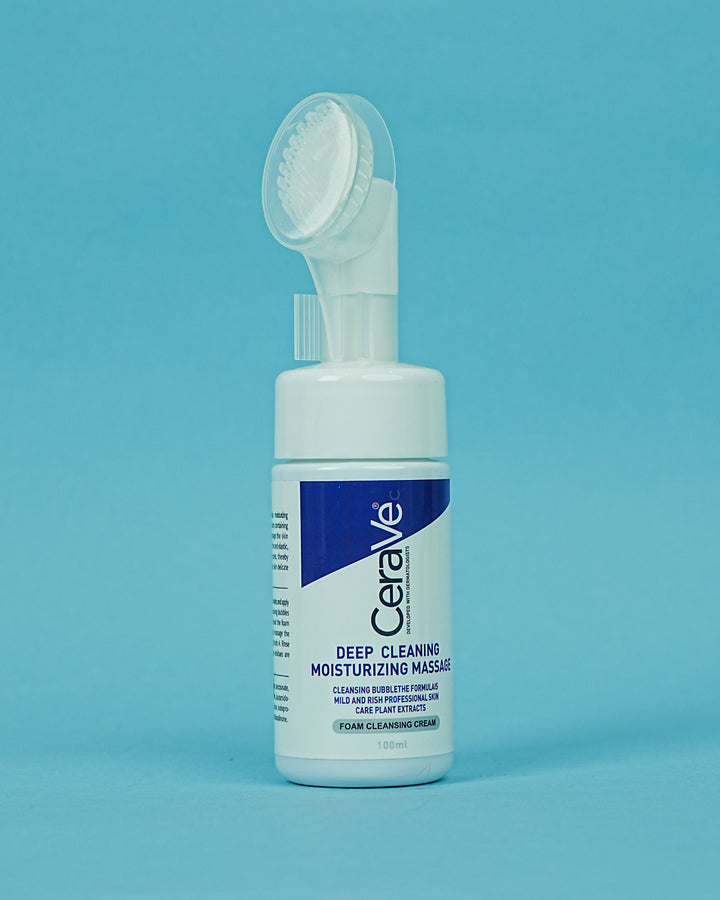 CeraVe Deep Cleaning Moisturizing Massage Foam Cleansing Cream is a gentle foam cleanser formulated with plant extracts to cleanse the skin deeply while moisturizing. It’s a professional skincare product developed with dermatologists to provide a soothing, mild, and rich cleansing experience.