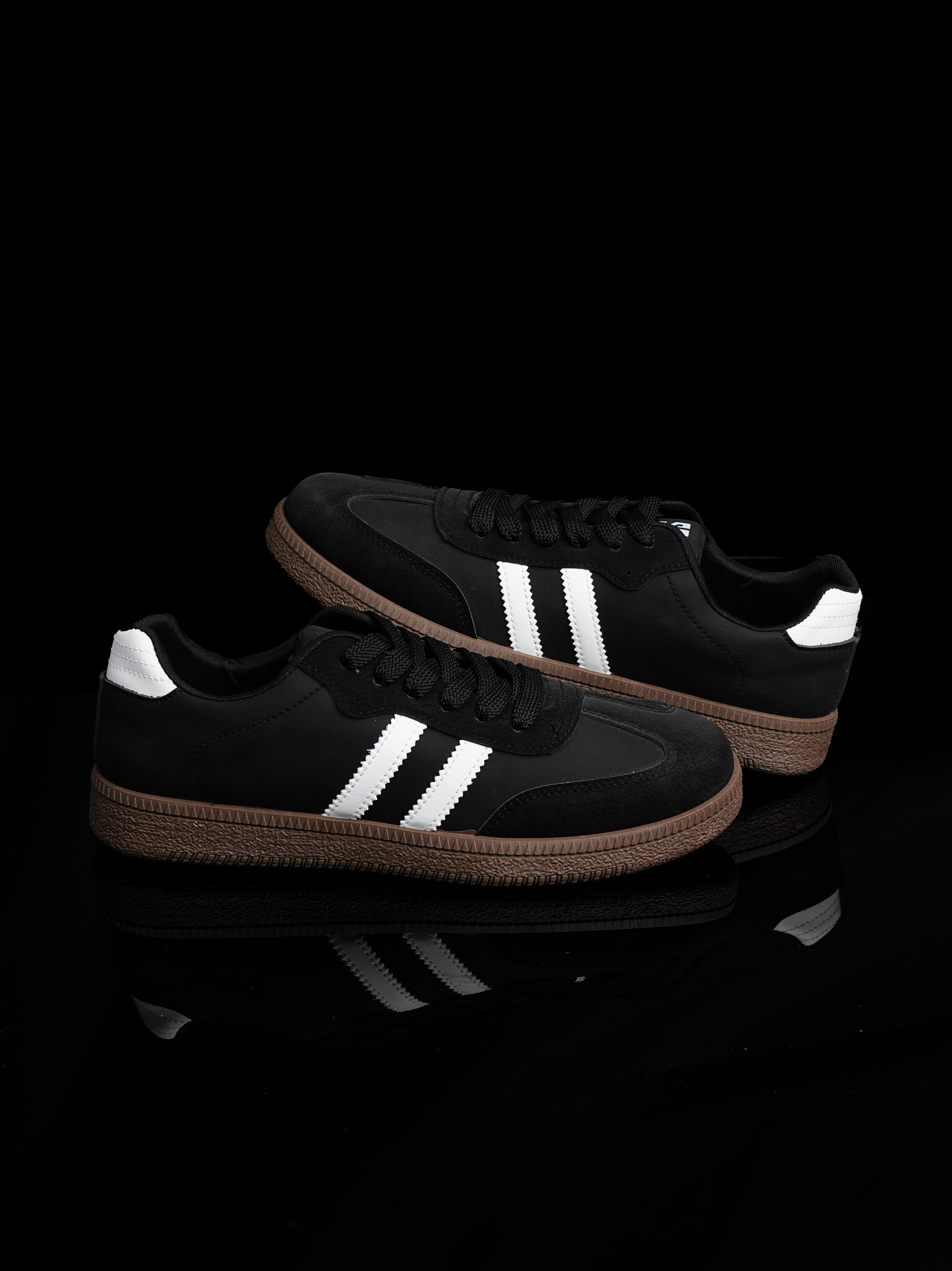 The style is highly indicative of the Adidas Samba (or a closely styled alternative).