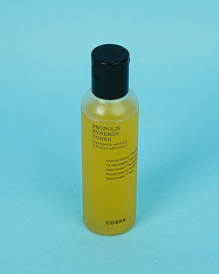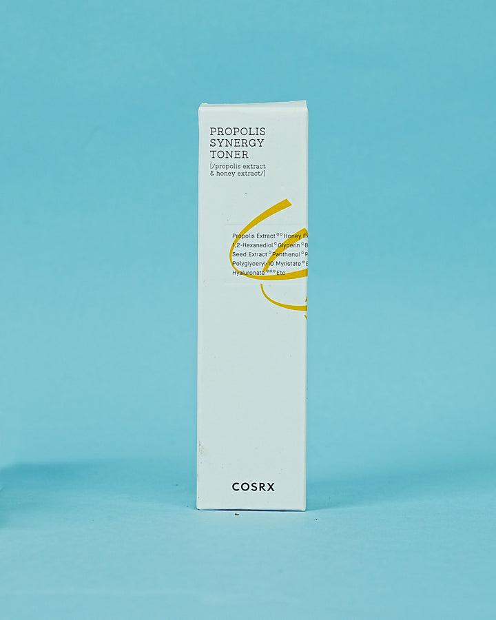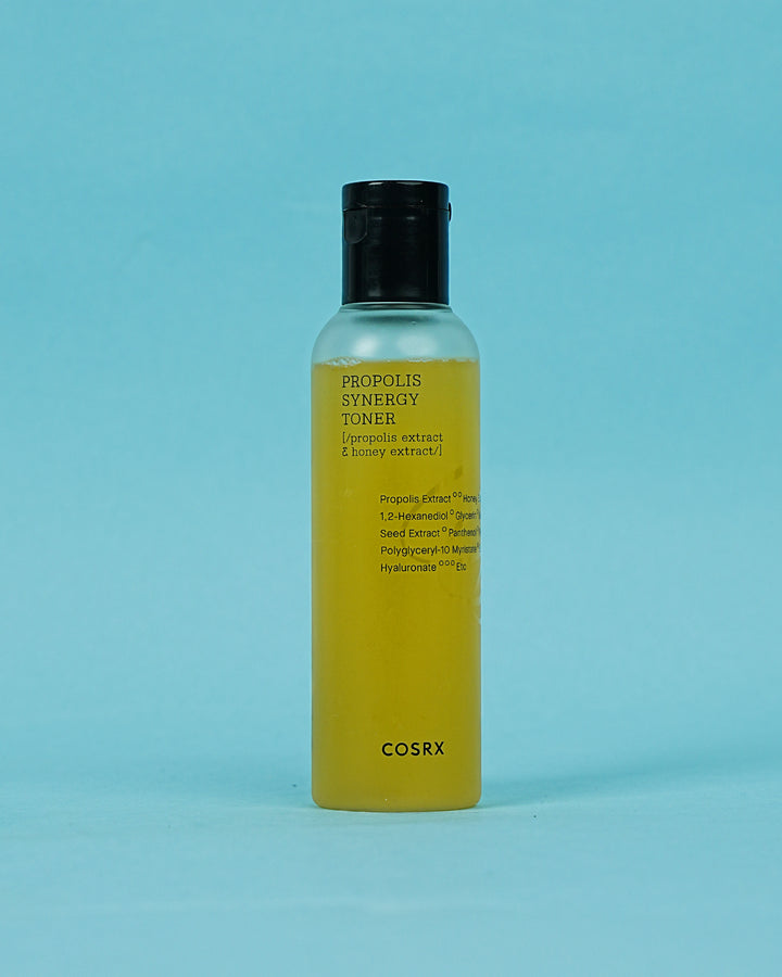 The COSRX Propolis Synergy Toner is a skincare toner infused with propolis extract and honey extract, both known for their soothing and hydrating properties. It's designed to help replenish, hydrate, and nourish the skin after cleansing. -