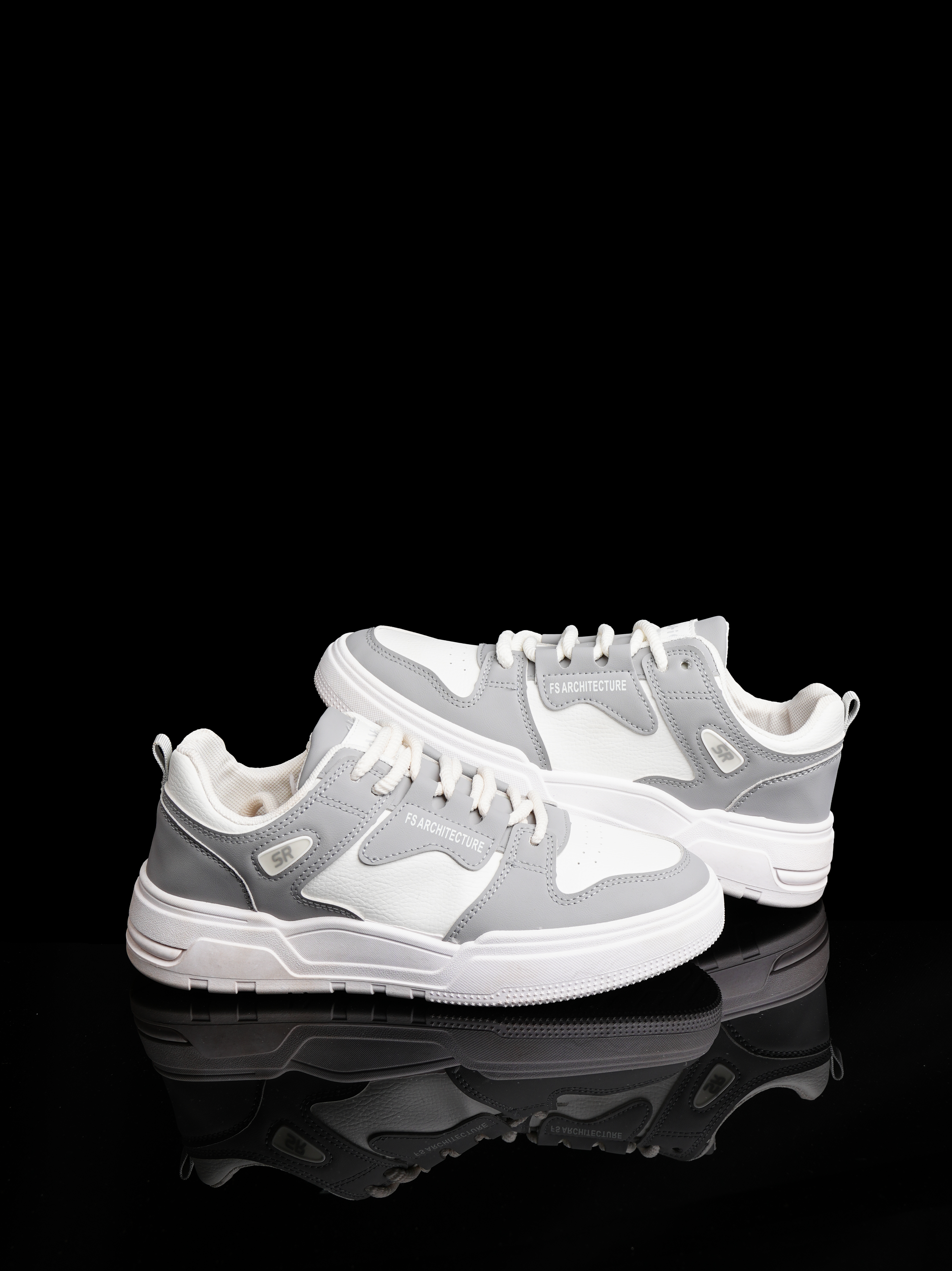 Upper Material: Made from synthetic leather (or PU) for both the white base and the light grey overlays, ensuring a smooth, structured, and durable exterior.