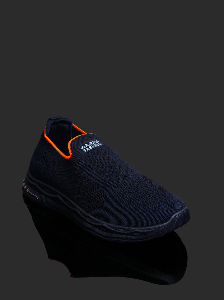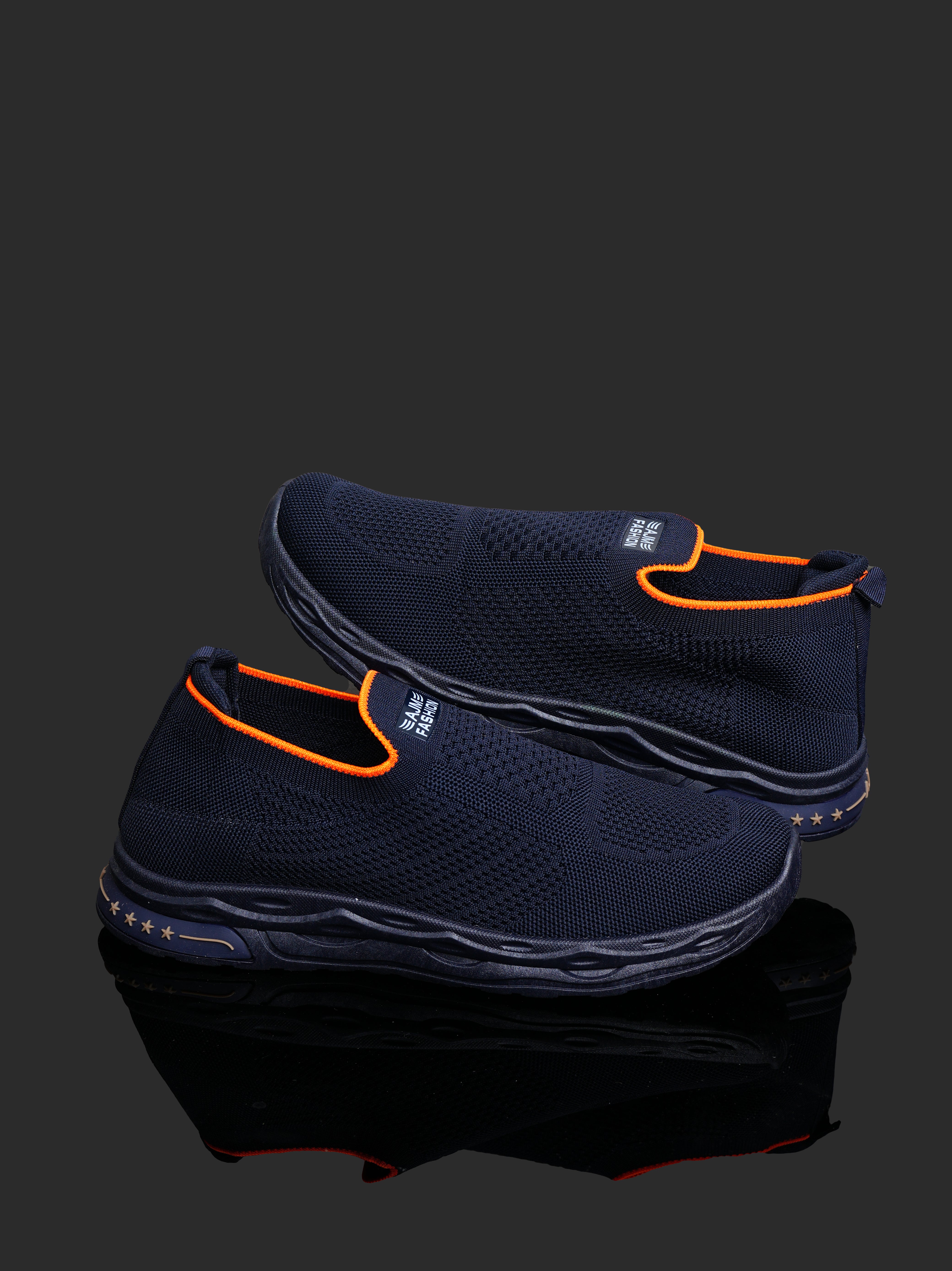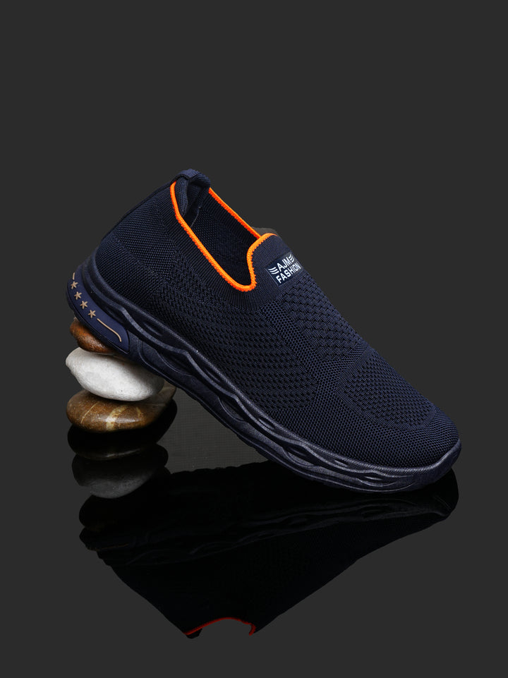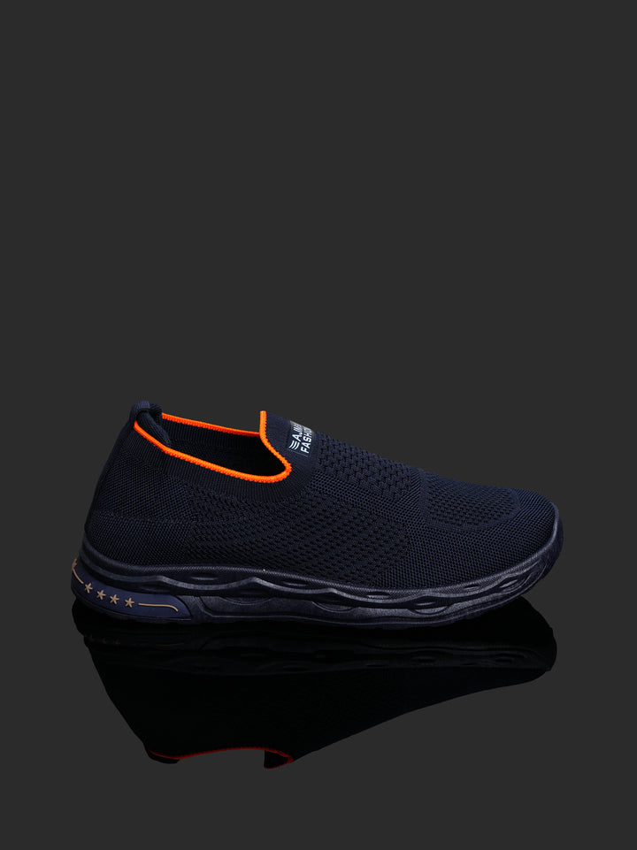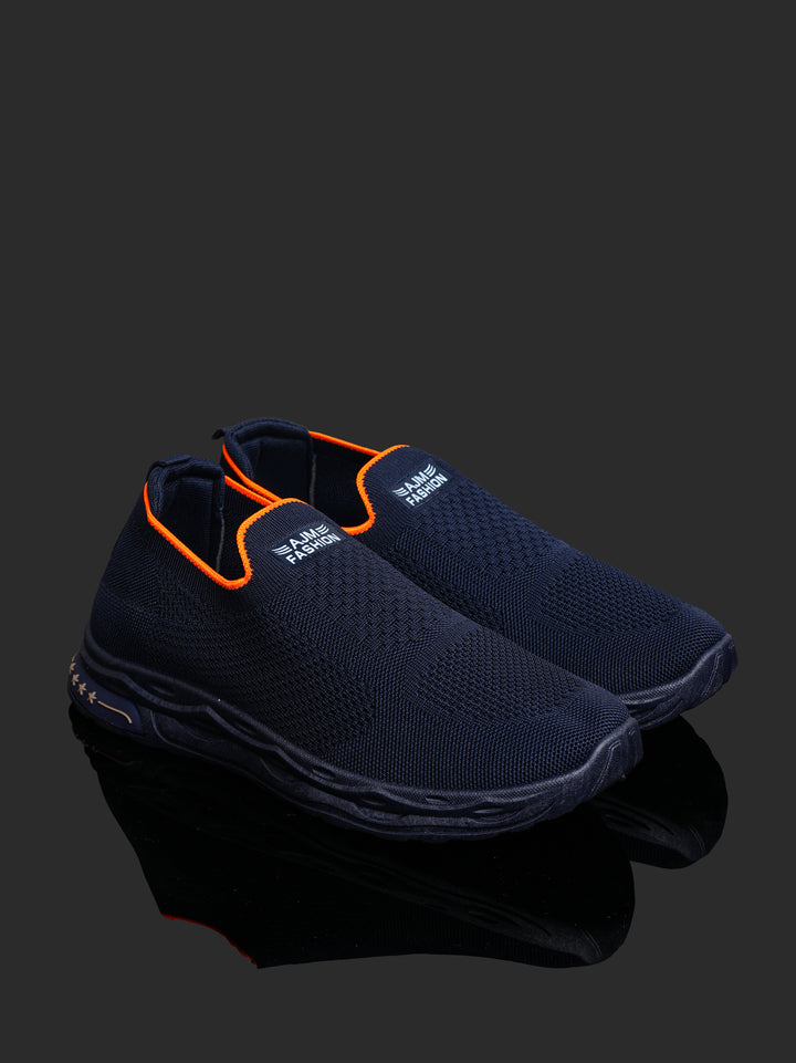 Men's Knit Slip-On Active Sneakers - Navy Blue/Orange Accent