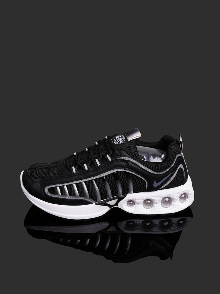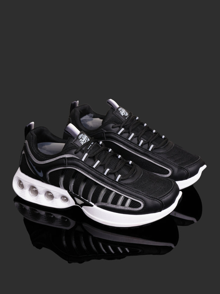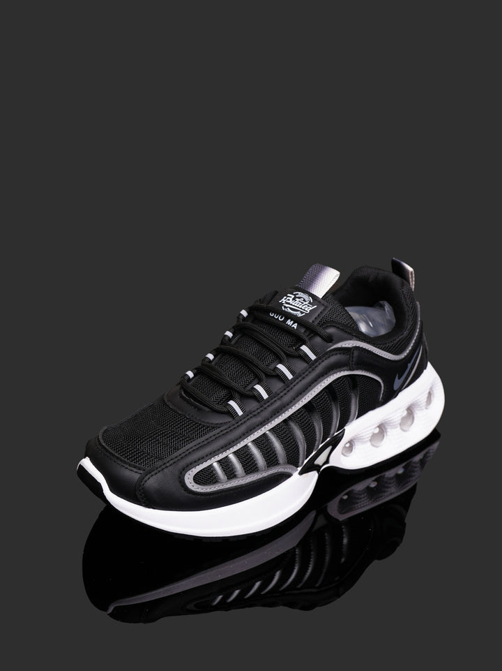 Relive the classic performance look with these Men's Retro-Inspired Sneakers. Featuring a sharp black and white color scheme with subtle gray piping, these shoes deliver a blend of vintage runner aesthetics and modern comfort technology.