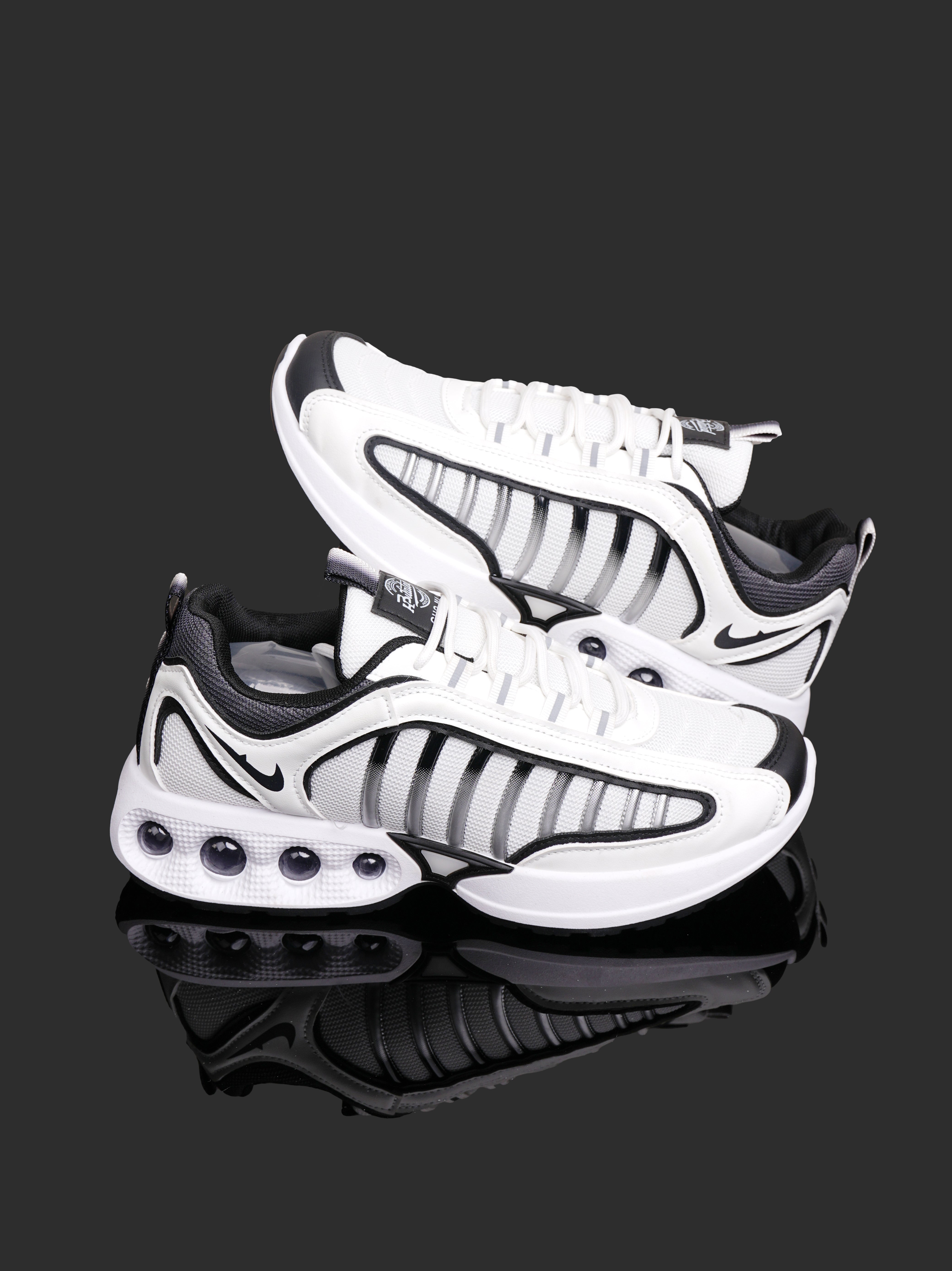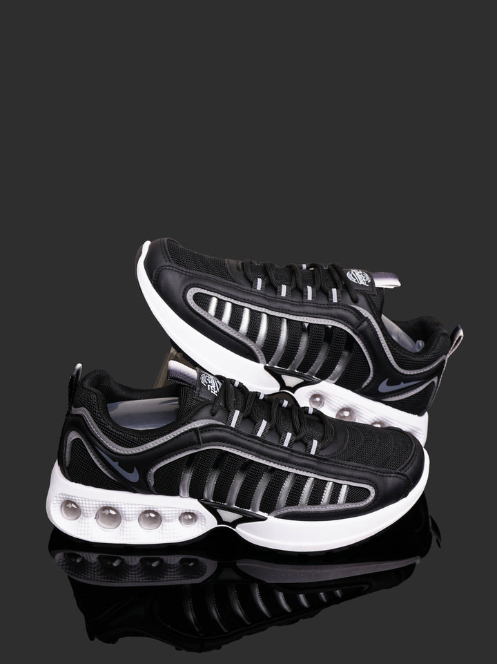 Responsive Cushioning: The prominent white, sculpted midsole includes visible cushioning pods, providing excellent impact absorption and a comfortable ride. This makes them perfect for light jogging, long walks, gym sessions, or everyday casual wear.