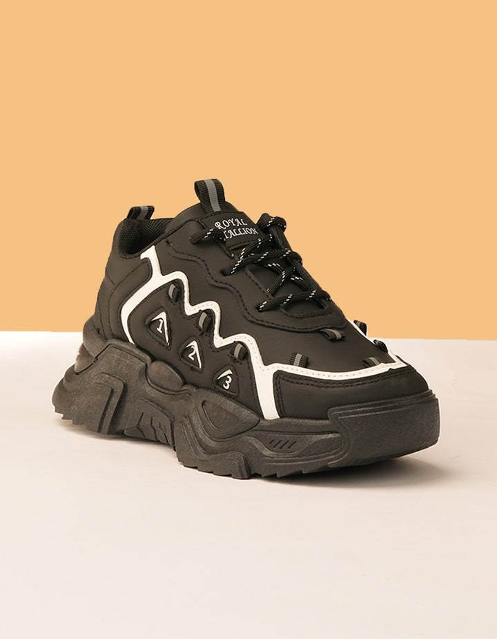 The Jet Set Monochrome Sneakers redefine the black sneaker with their dynamic design and chunky silhouette. Perfect for those who seek a blend of style and practicality, these sneakers boast a timeless color with a fashion-forward twist. The intricate detailing and resilient sole make them a staple for any urban adventurer.